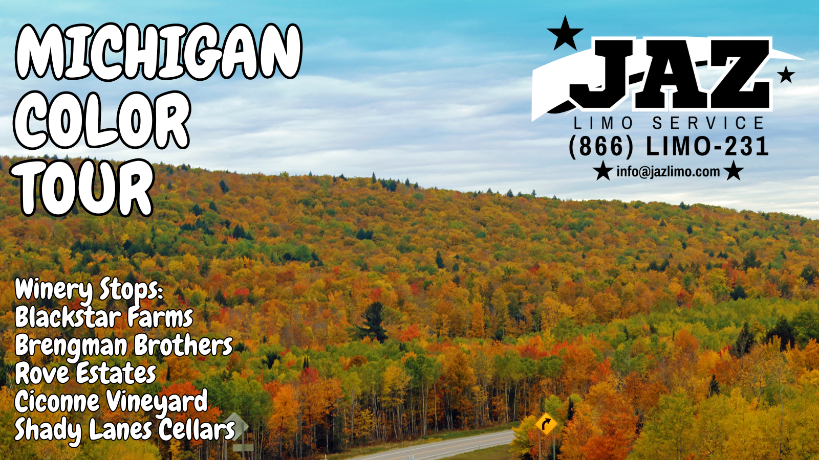 October 15th & October 21st, see the colors of Michigan Fall with Jaz Limo of Evart!